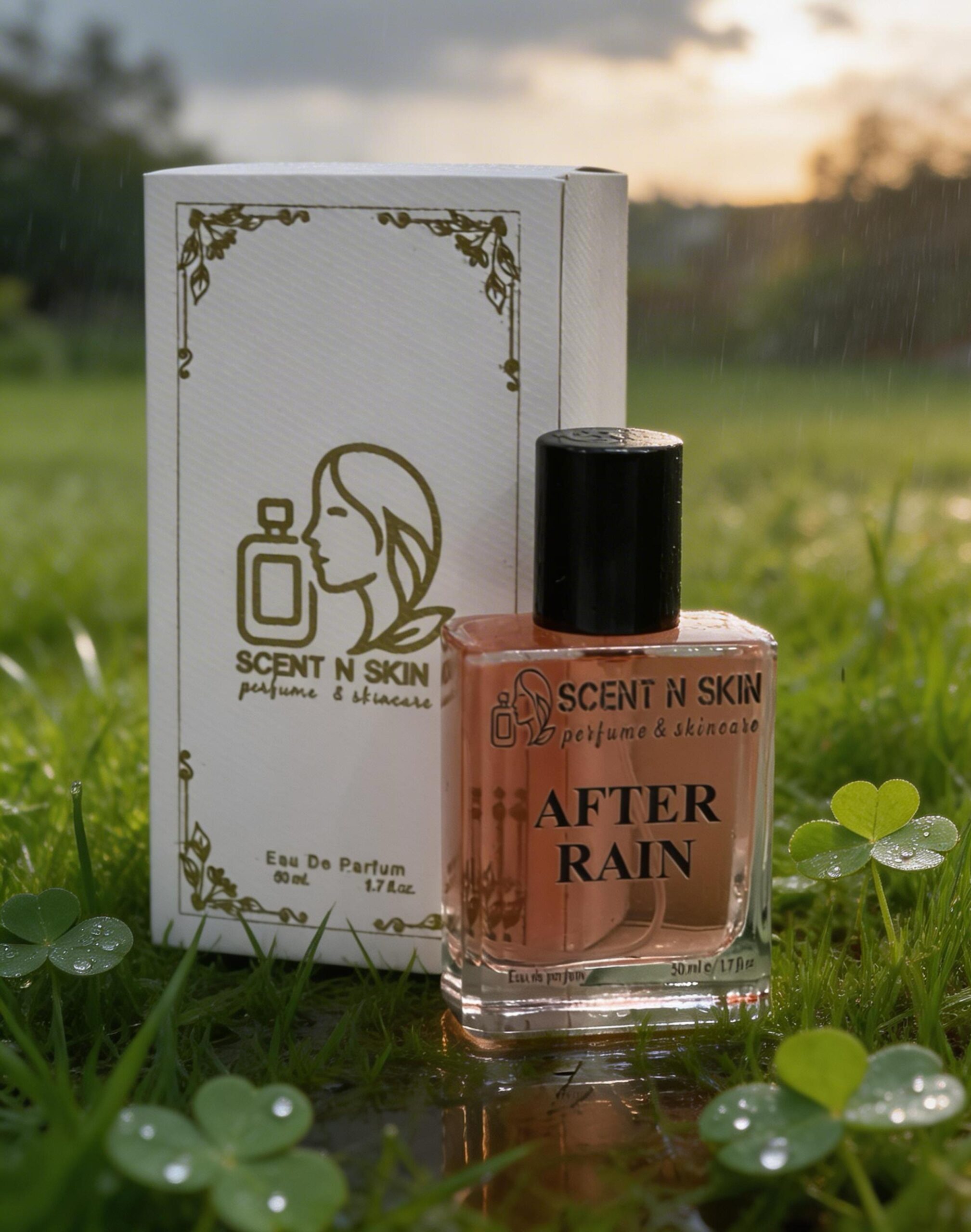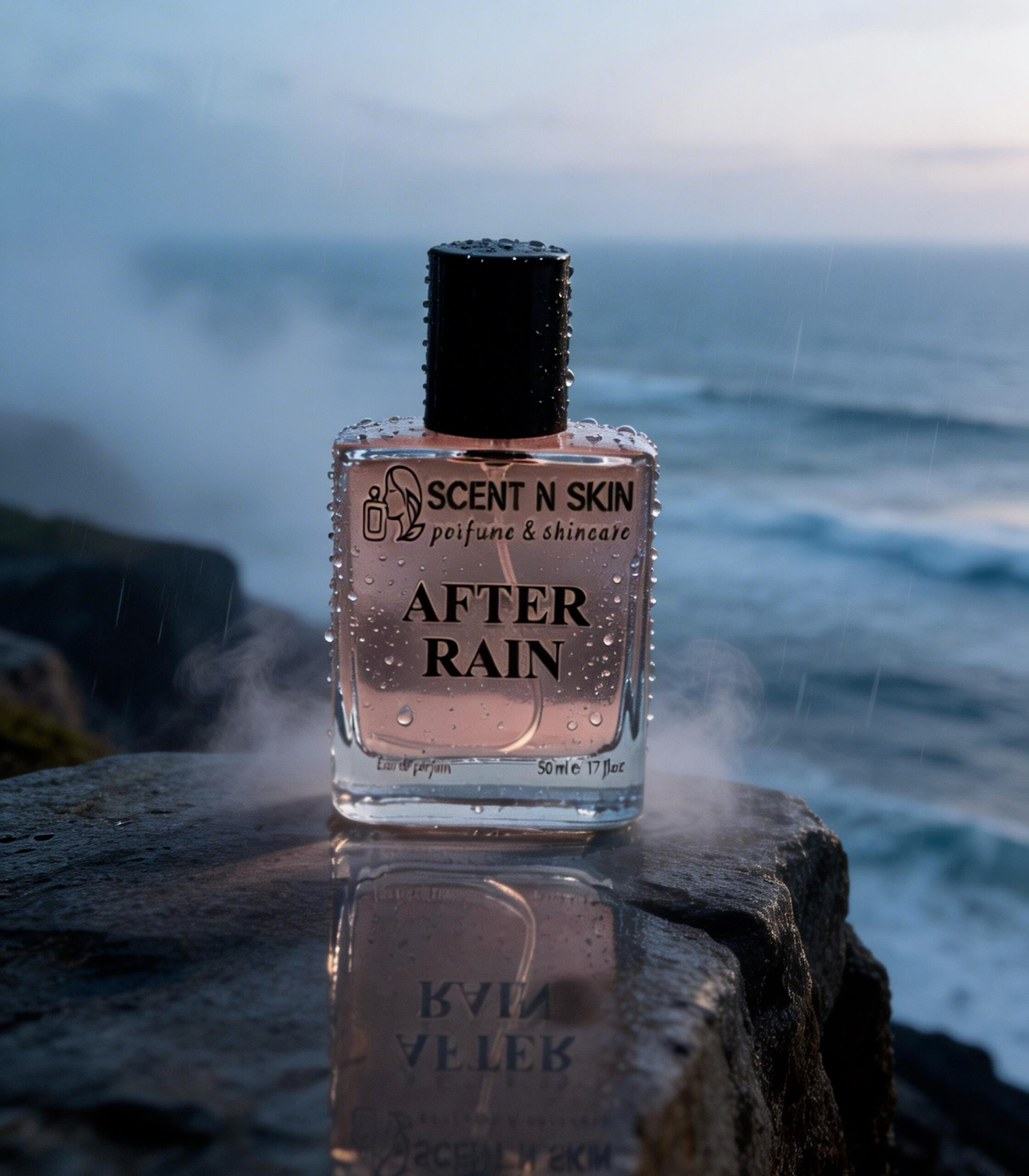 After Rain is a bold yet refreshing Eau de Parfum (EDP) by Scent N Skin that captures the crisp clarity of nature after a storm. A vibrant citrus opening awakens the senses, flowing into an aromatic and green heart layered with subtle fresh and soft spicy nuances.